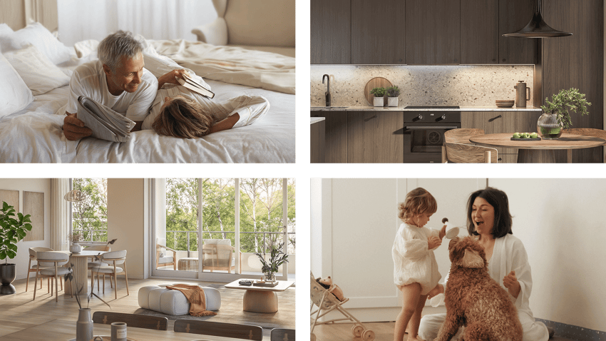 Kaikki havainnekuvat ovat taiteilijan näkemyksiä. Niiden sisältö ei välttämättä vastaa kaikilta osin kohteen lopullista toteutusta. Huoneistojen pohjapiirustukset ja 3D-kuvat perustuvat 25.11.2025 tilanteeseen. Rakentaja varaa oikeuden suunnittelutyön edistämisen edellyttämiin täsmennyksiin ja muutoksiin, jotka eivät olennaisesti heikennä tuotteen laatua.